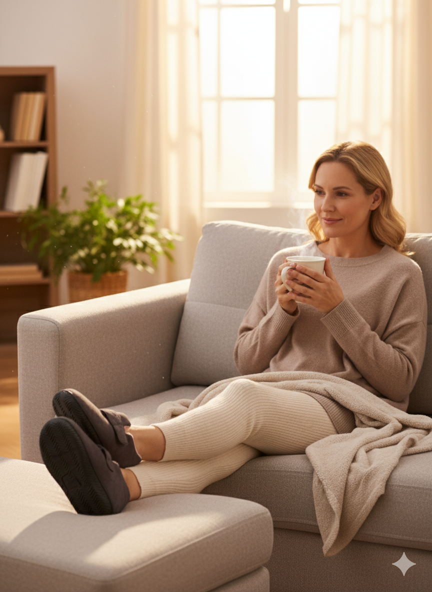 With our Orthopedic Support Slippers, you enjoy the cozy feel of home footwear combined with true orthopedic care. Designed to cushion, align, and support your feet, they ease pain, improve stability, and keep you comfortably active all while feeling light, warm, and natural.